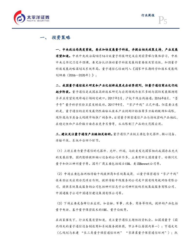 太平洋证券:通信行业周报:政策催化行业加速,关注5G应用和量子通信.pdf