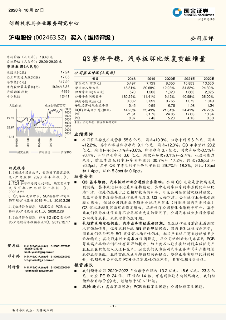 国金证券:沪电股份(002463)-Q3整体平稳,汽车板环比恢复贡献增量.pdf