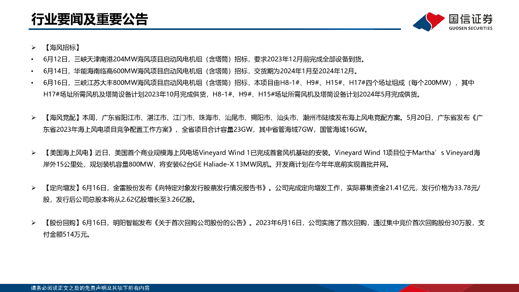 国信证券:风电/电网产业链周评(6月第3周):江苏大丰海风项目启动招标,广东海风竞配快速推进.pdf