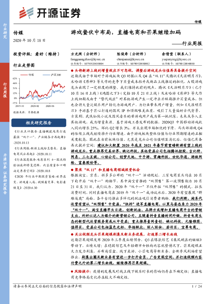 开源证券:传媒行业周报:游戏蛰伏中布局,直播电商和芒果继续加码.pdf