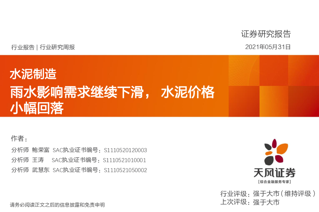 天风证券:水泥制造:雨水影响需求继续下滑,水泥价格小幅回落.pdf