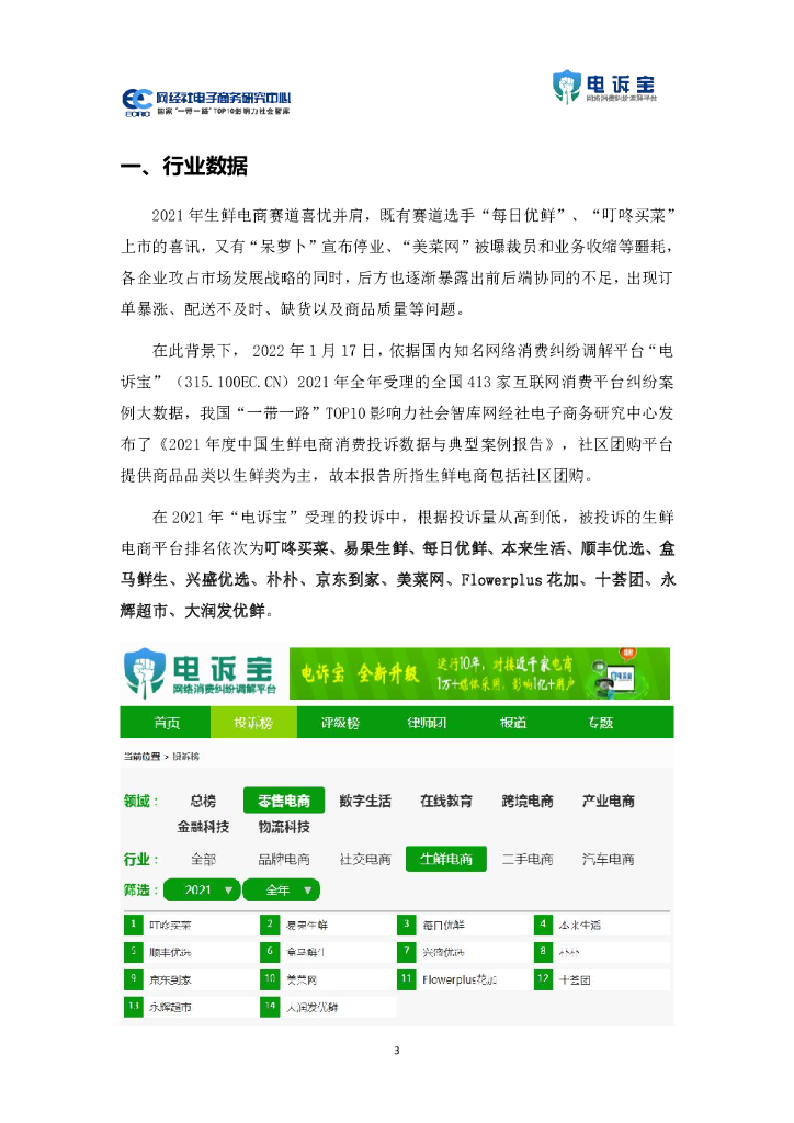 电子商务研究中心:2021年中国生鲜电商消费投诉数据与典型案例报告.pdf