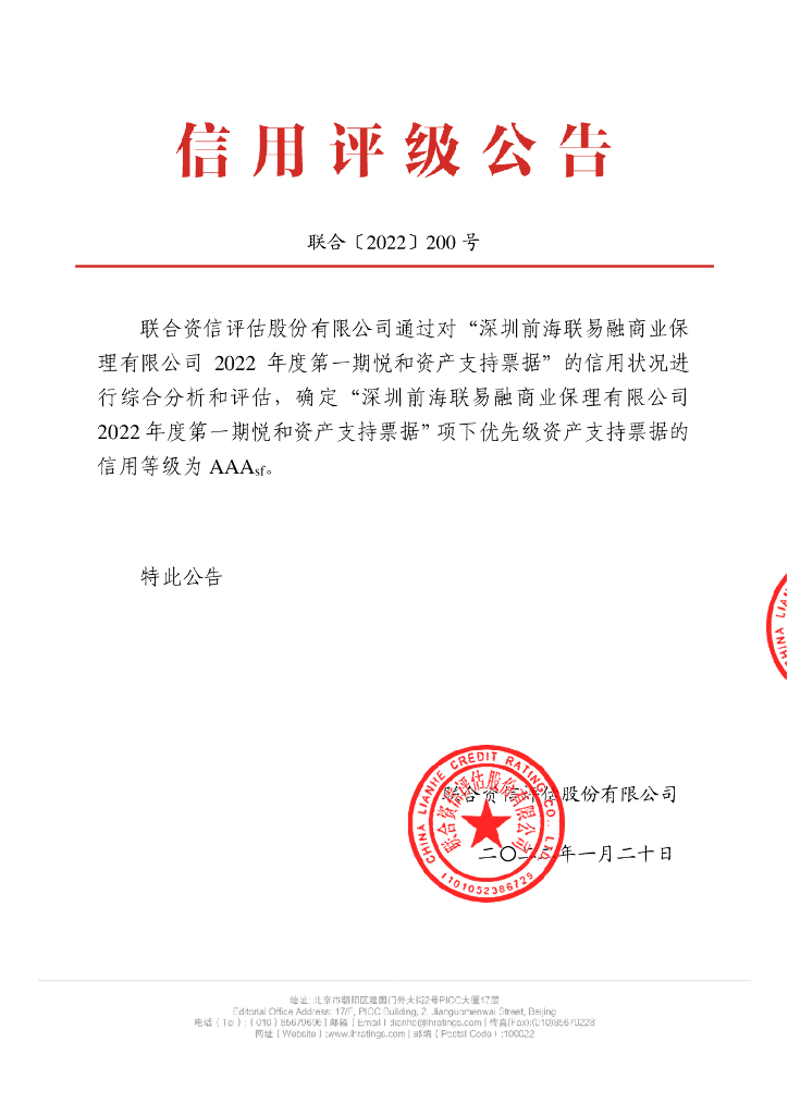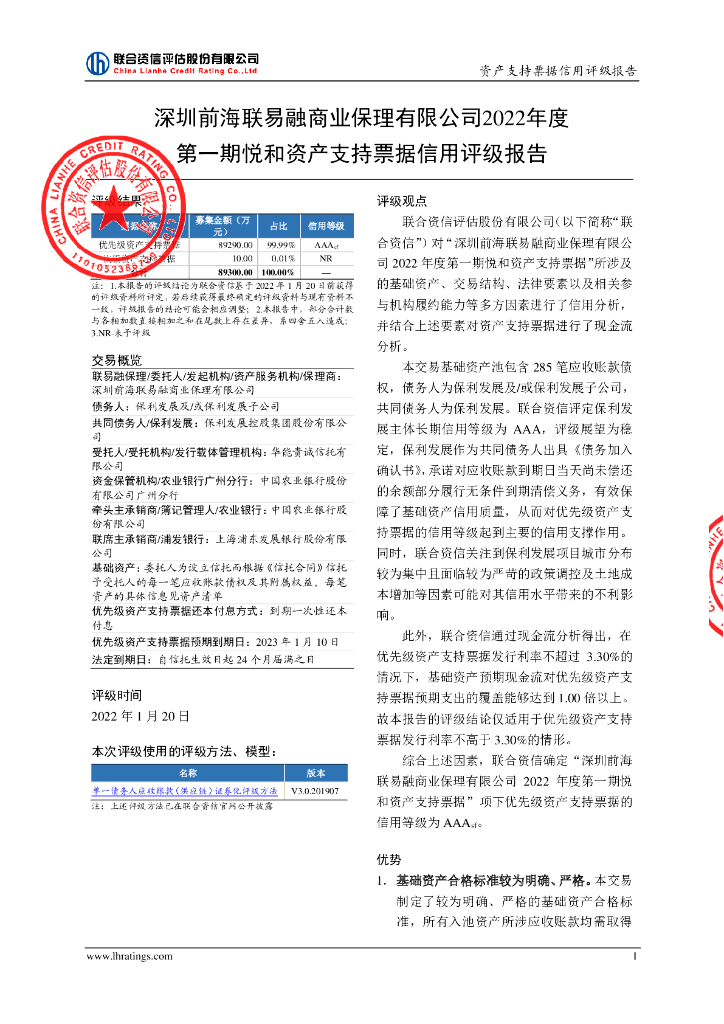 联合资信:深圳前海联易融商业保理有限公司2022年度第一期悦和资产支持票据信用评级报告.pdf