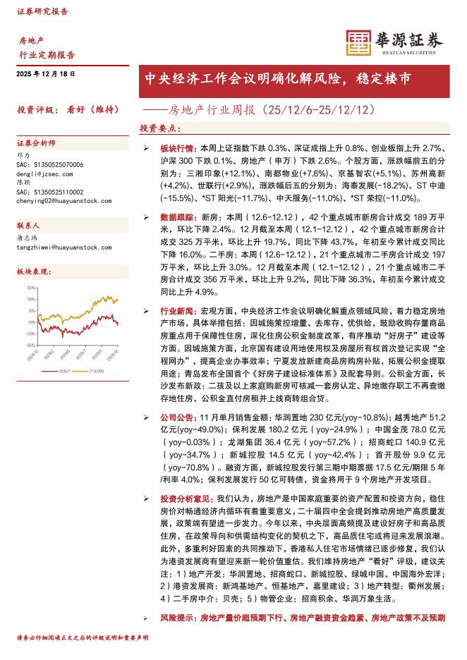华源证券:房地产行业周报:中央经济工作会议明确化解风险,稳定楼市.pdf