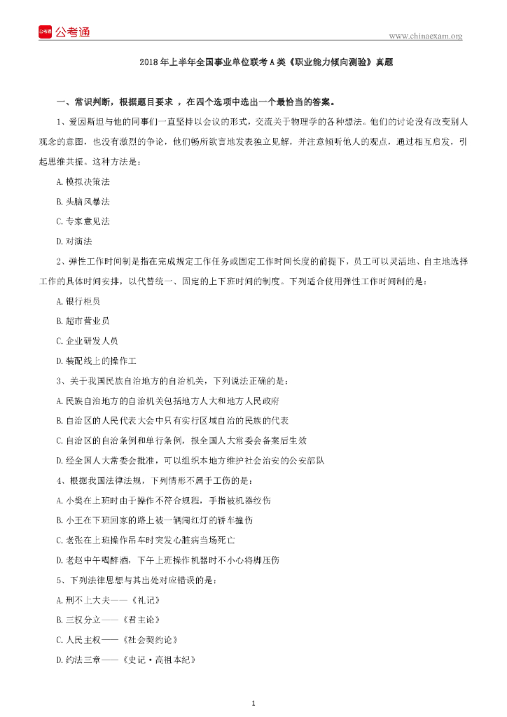 2018上半年事业单位联考《职业能力倾向测验》A类真题及答案.pdf