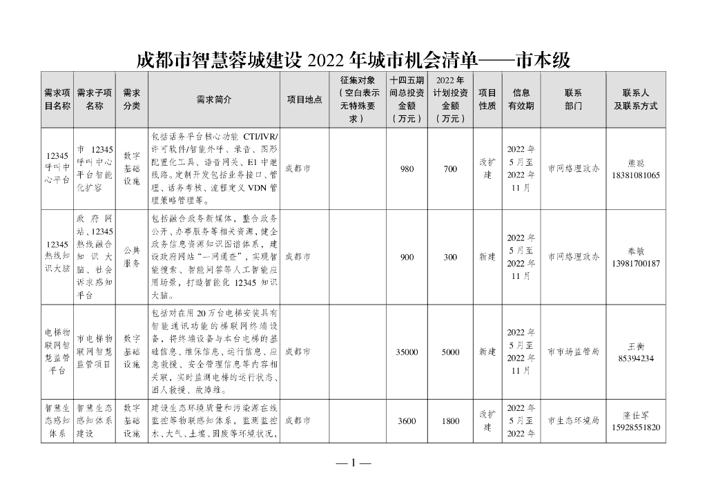 成都市智慧蓉城建设2022年城市机会清单——市本级.pdf