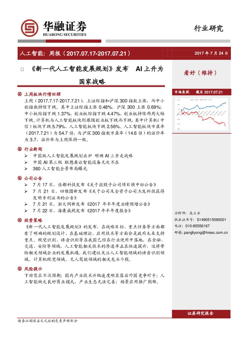 华融证券:《 新一代人工智能发展规划》发布AI上升为国家战略.pdf