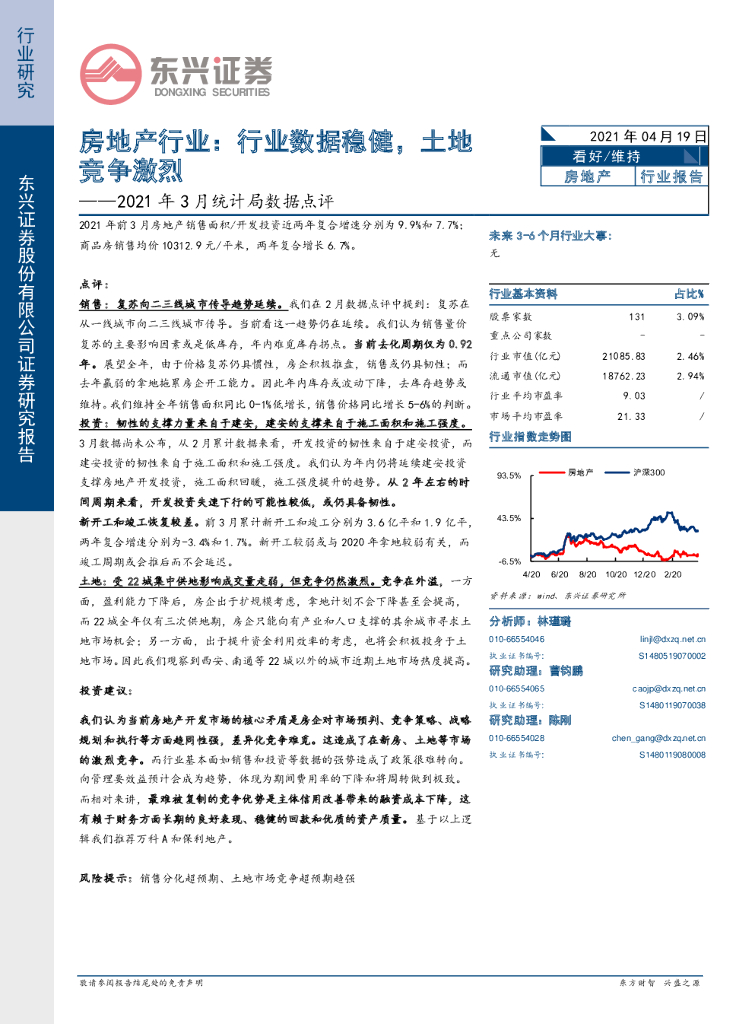 东兴证券:房地产行业2021年3月统计局数据点评:行业数据稳健,土地竞争激烈.pdf