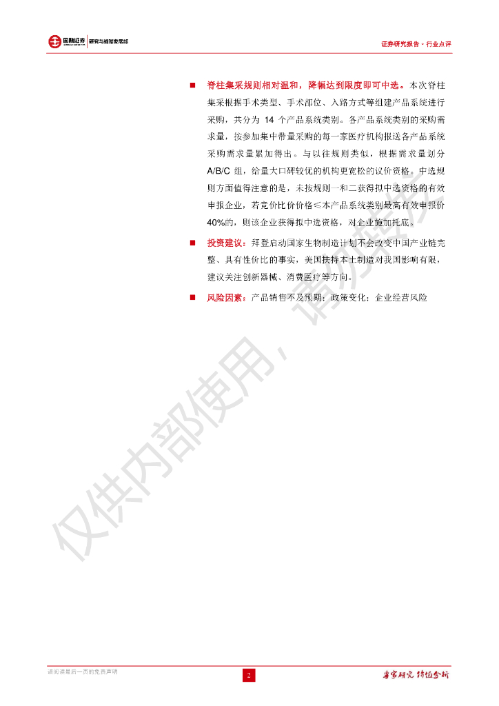国融证券:医药生物行业点评:集采政策趋于稳定,医药产业链性价比优势明显.pdf