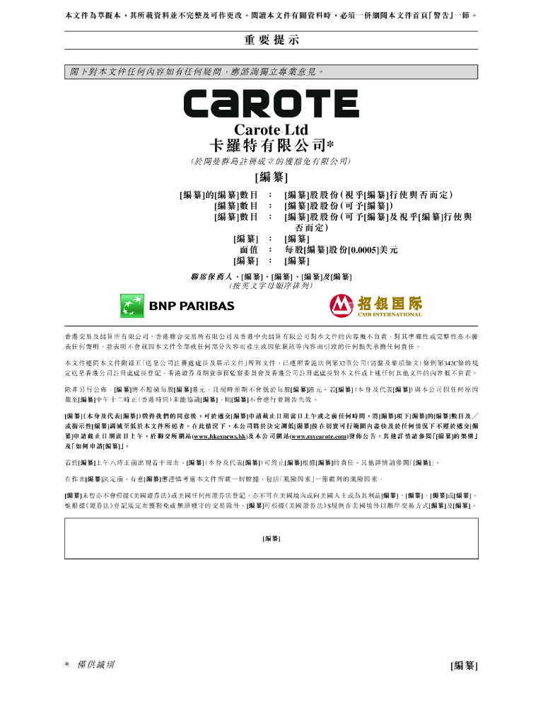 Carote Ltd卡罗特有限公司港交所主板IPO上市招股说明书.pdf