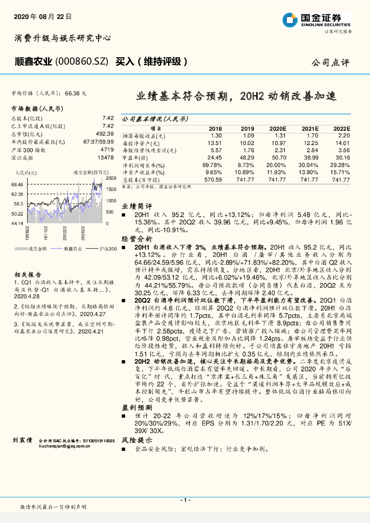 国金证券:顺鑫农业(000860)-业绩基本符合预期,20H2动销改善加速.pdf