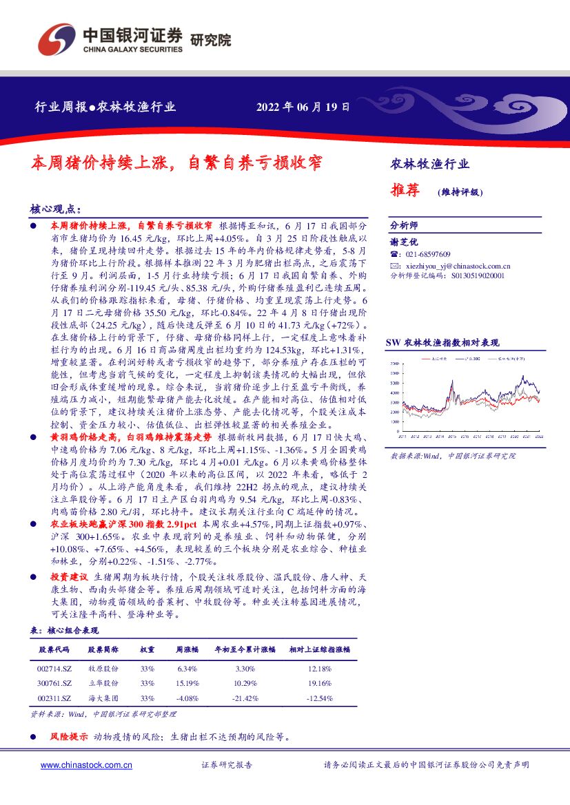 中国银河:农林牧渔行业周报:本周猪价持续上涨,自繁自养亏损收窄.pdf