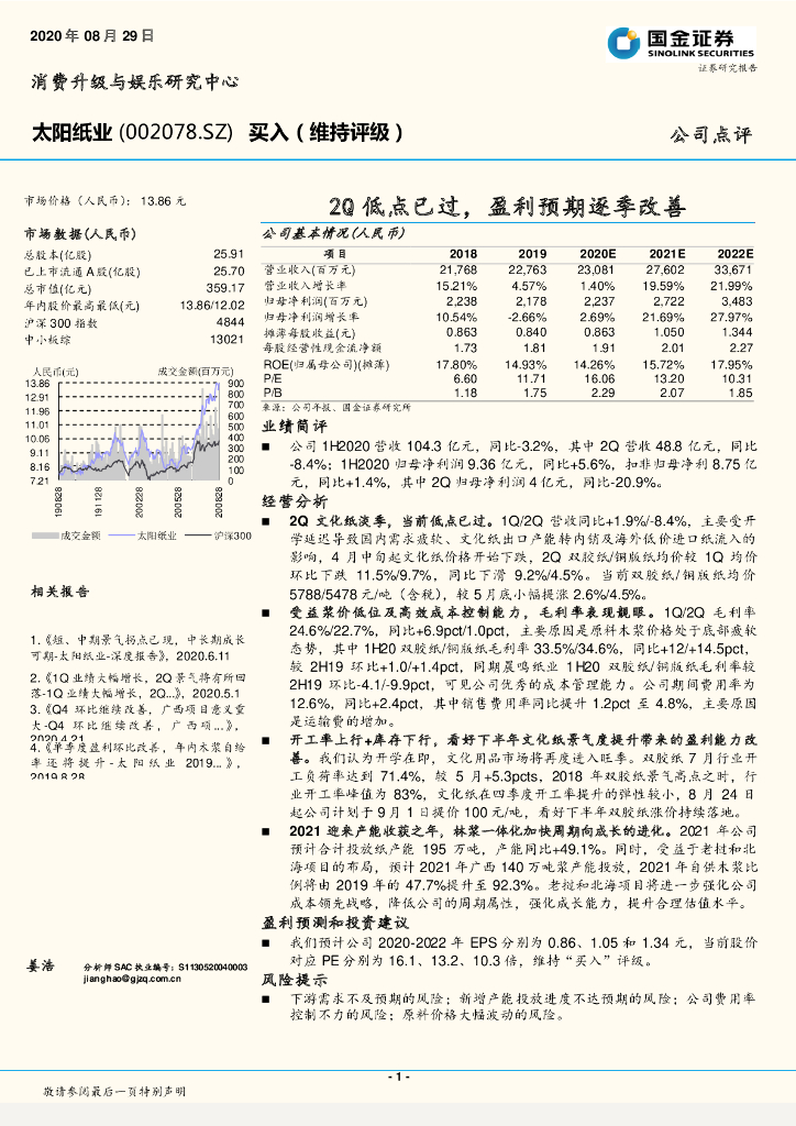 国金证券:太阳纸业(002078)-2Q低点已过,盈利预期逐季改善.pdf