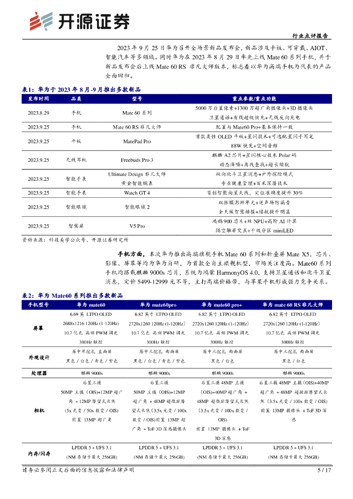 开源证券:消费电子行业点评报告:华为高端手机回归,消费电子产业链有望边际改善.pdf
