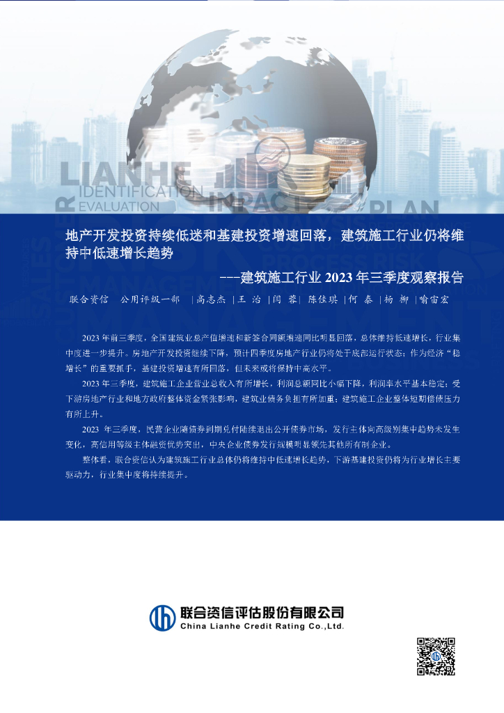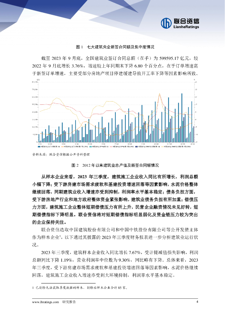 联合资信:地产开发投资持续低迷和基建投资增速回落,建筑施工行业仍将维持中低速增长趋势——建筑施工行业2023年三季度观察报告.pdf