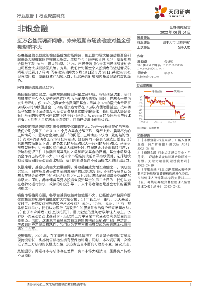 天风证券:非银金融近万名基民调研问卷:未来短期市场波动或对基金份额影响不大.pdf
