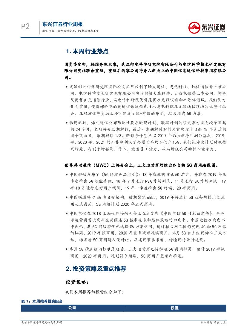 东兴证券:通信行业周报:武邮电科合并,5G推进预期不变.pdf