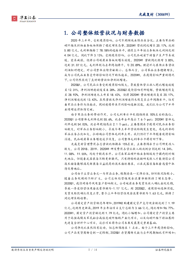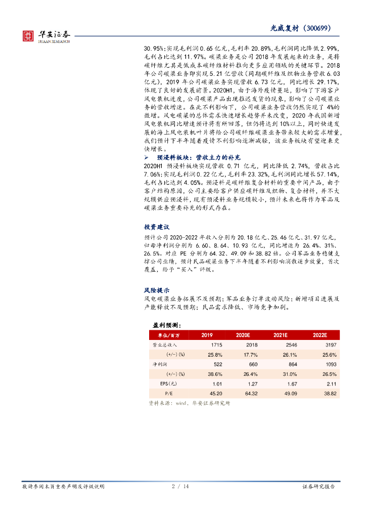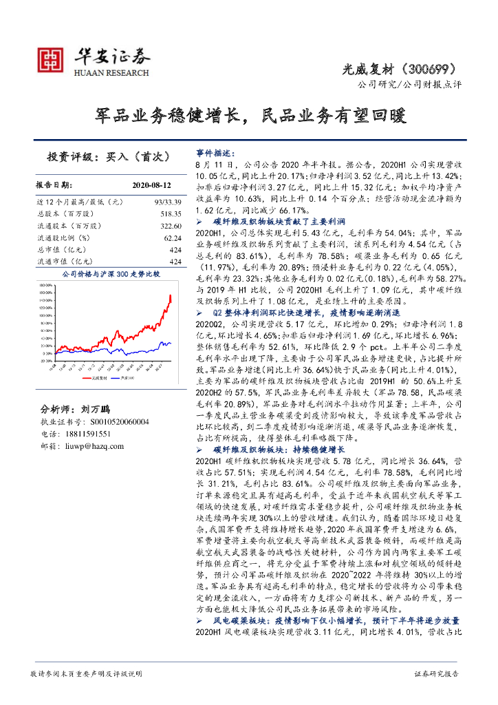 华安证券:光威复材(300699)-军品业务稳健增长,民品业务有望回暖.pdf