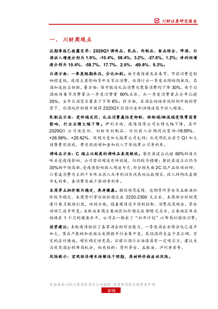 川财证券:食品饮料行业周报:2020Q1白酒行业分化加大,乳制品业绩降幅明显.pdf