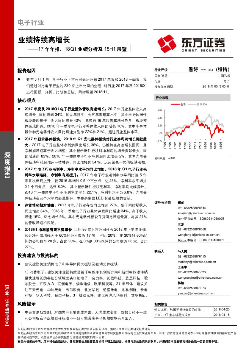 东方证券:电子行业17年年报、18Q1业绩分析及18H1展望:业绩持续高增长.pdf