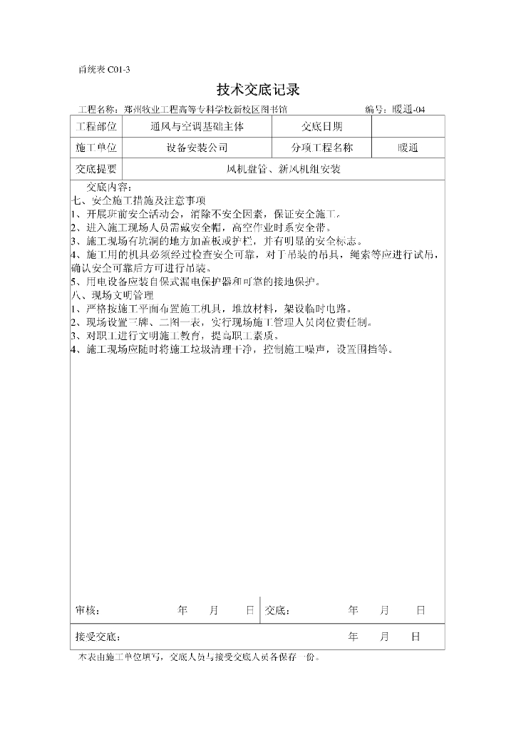 郑州某大学图书馆暖通空调施工技术交底.pdf