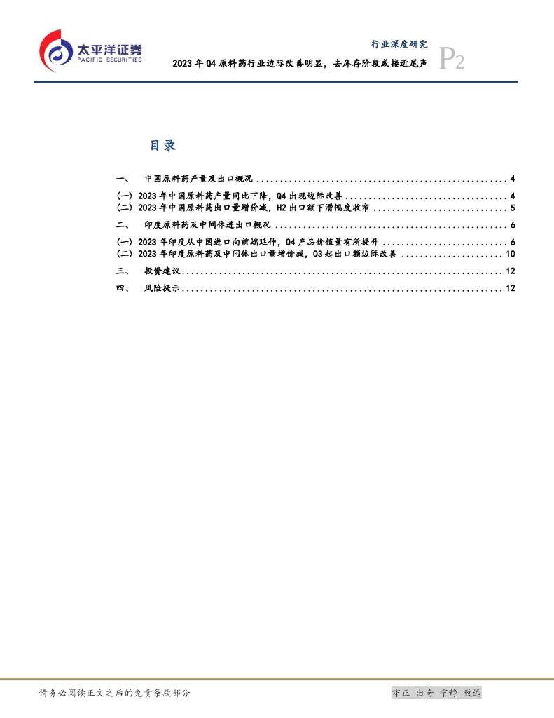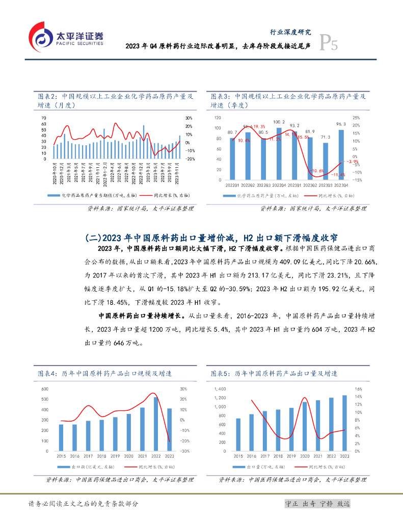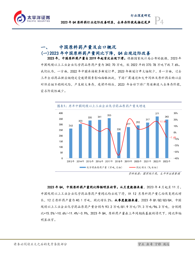 太平洋证券:化学制药行业深度研究:2023年Q4原料药行业边际改善明显,去库存阶段或接近尾声.pdf