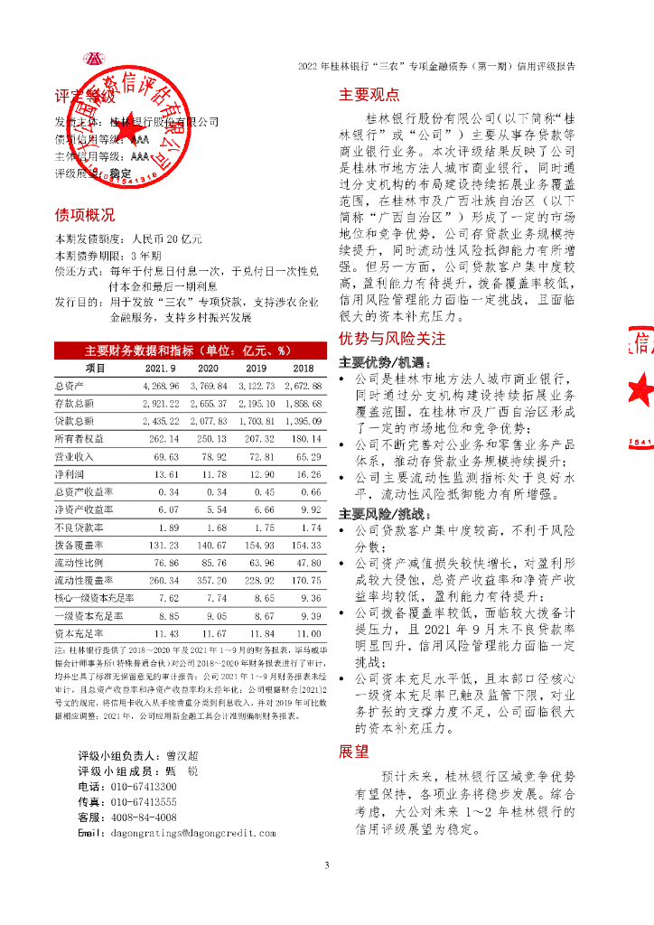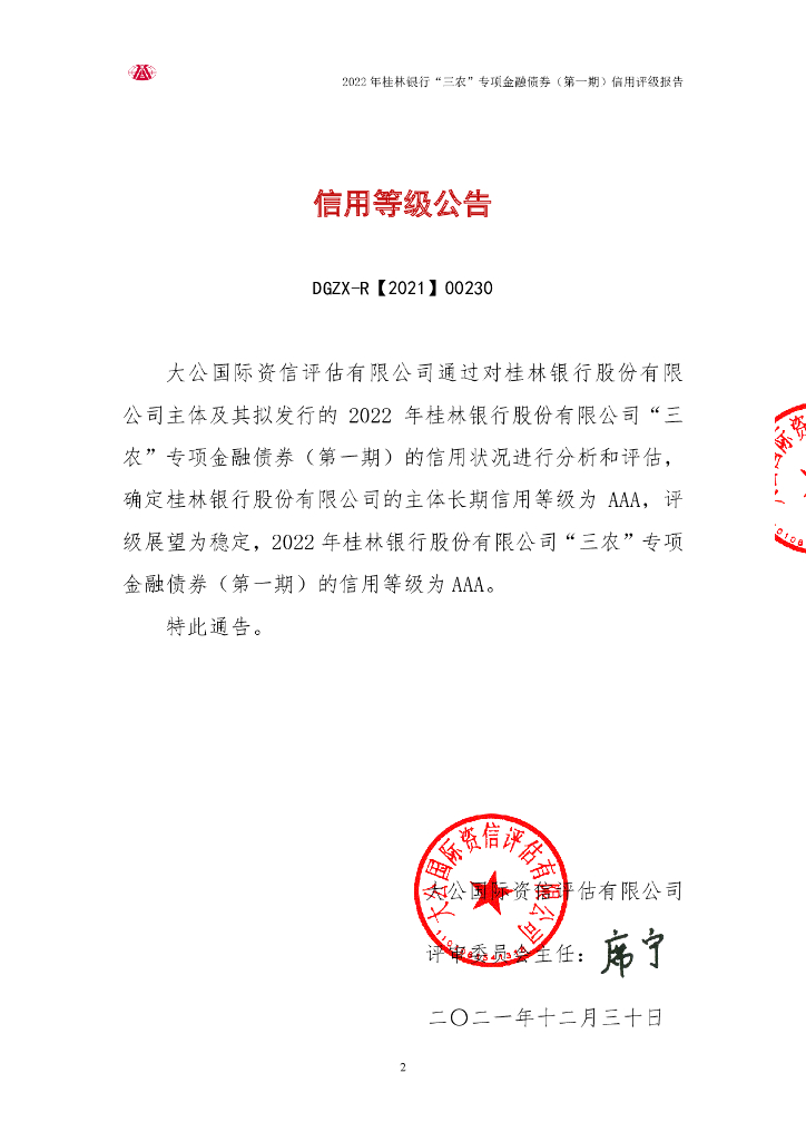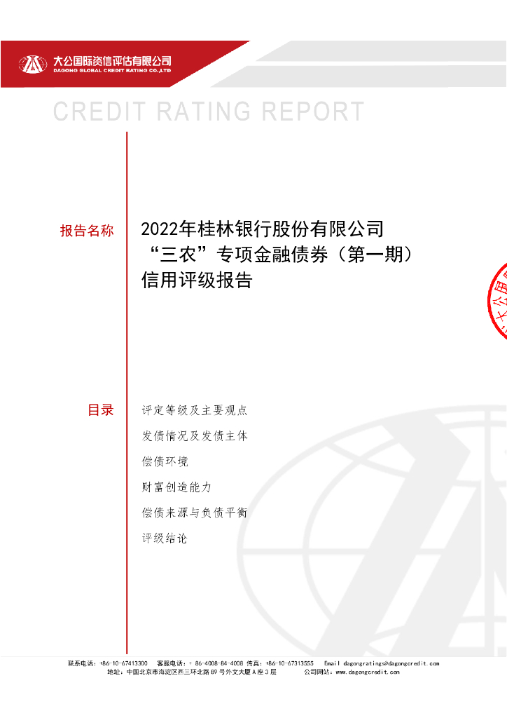 大公:2022年桂林银行股份有限公司“三农”专项金融债券(第一期)信用评级报告.pdf