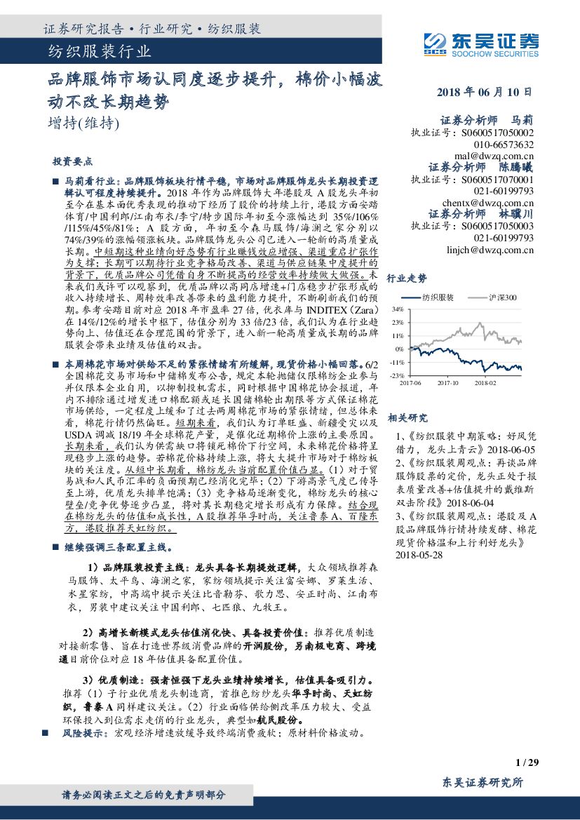 东吴证券:纺织服装行业研究:品牌服饰市场认同度逐步提升,棉价小幅波动不改长期趋势.pdf