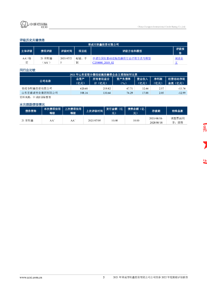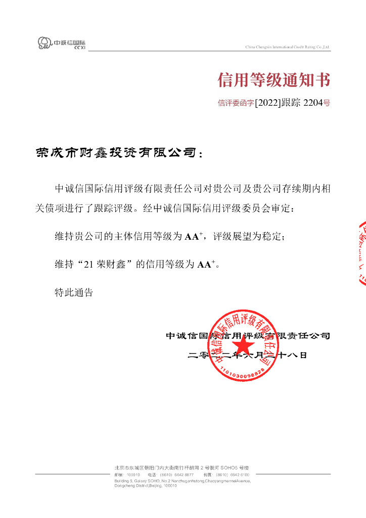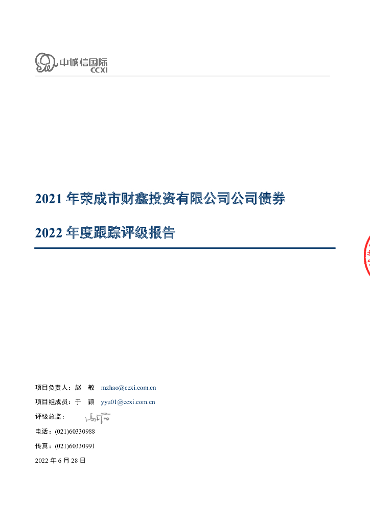 中诚信:2021年荣成市财鑫投资有限公司公司债券2022年度跟踪评级报告.pdf