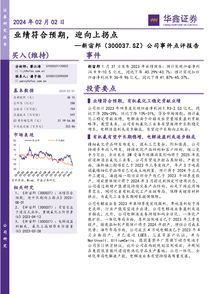 华鑫证券:新宙邦(300037)-公司事件点评报告:业绩符合预期,迎向上拐点.pdf