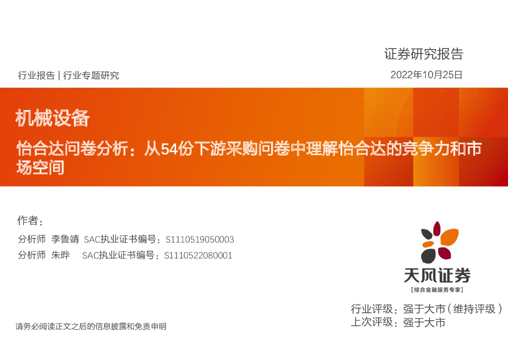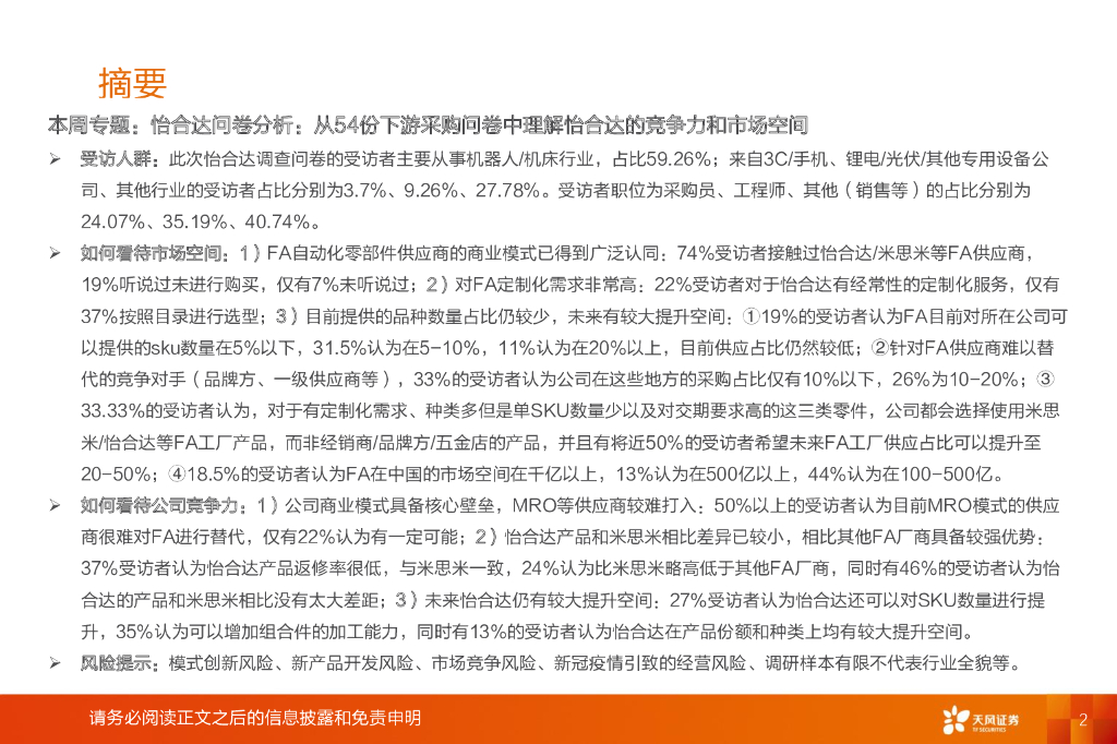 天风证券:机械设备:怡合达问卷分析:从54份下游采购问卷中理解怡合达的竞争力和市场空间.pdf