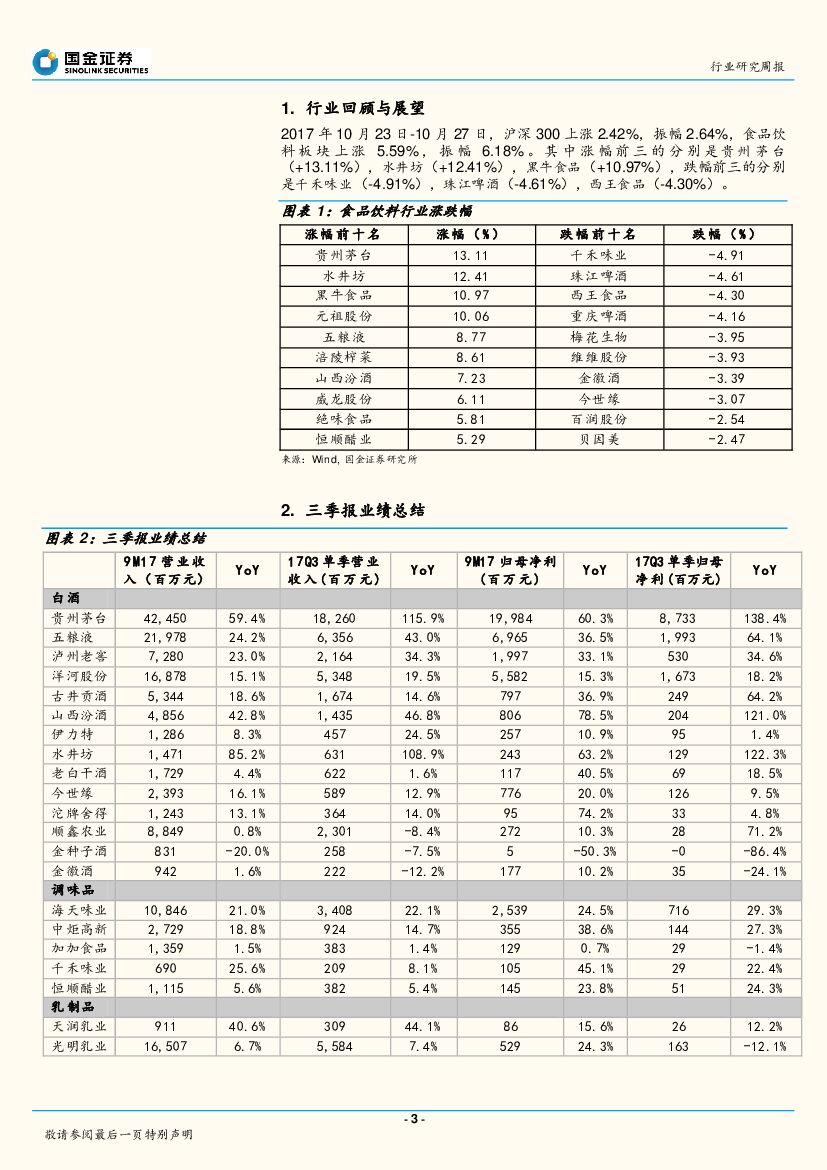 国金证券:食品饮料研究周报:业绩超预期推动一线白酒大涨,调味品龙头Q3业绩表现兑现此前判断.pdf
