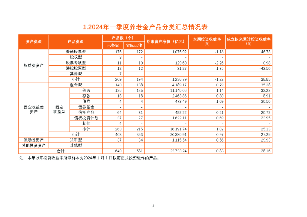 人社部:2024年一季度养老金产品业务数据摘要.pdf