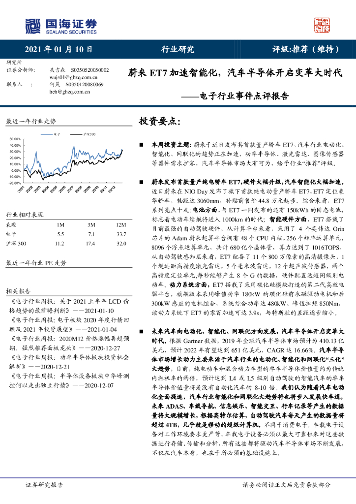 国海证券:电子行业事件点评报告:蔚来ET7加速智能化,汽车半导体开启变革大时代.pdf