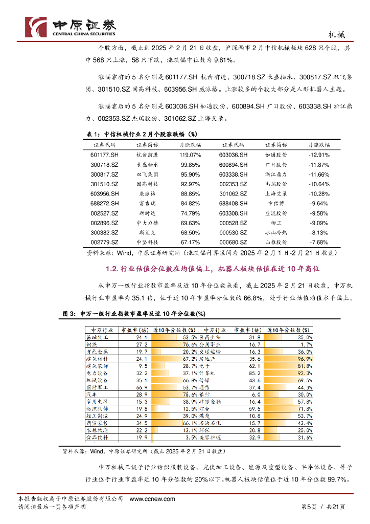 中原证券:机械行业月报:人工智能主题持续,继续推荐人形机器人、算力设备相关板块.pdf