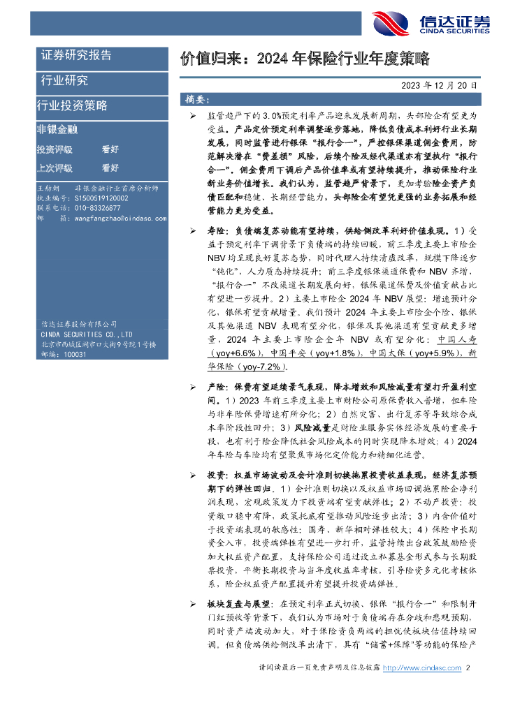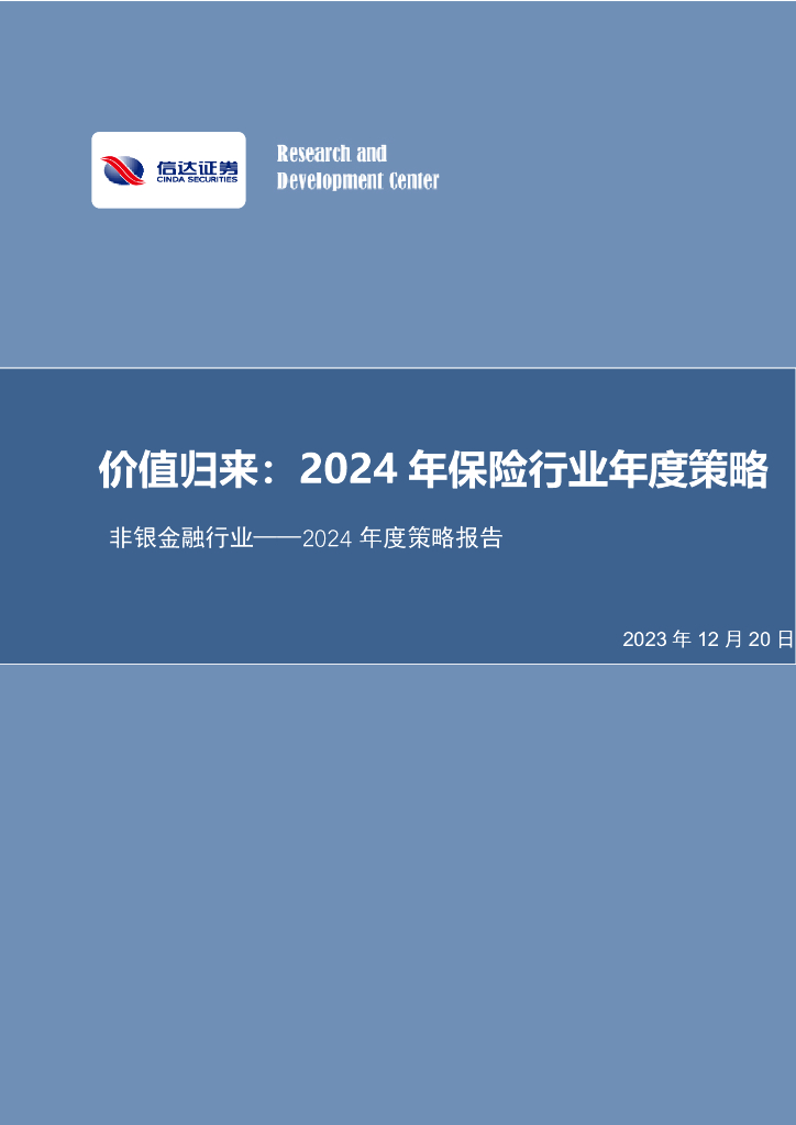 信达证券:非银金融行业2024年度策略报告:价值归来:2024年保险行业年度策略.pdf