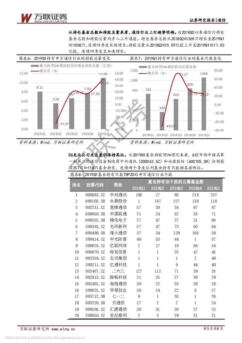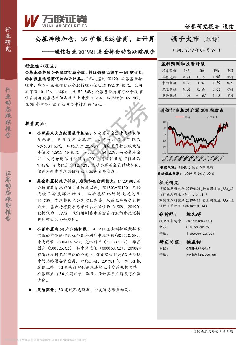 万联证券:通信行业2019Q1基金持仓动态跟踪报告:公募持续加仓,5G扩散至运营商、云计算.pdf
