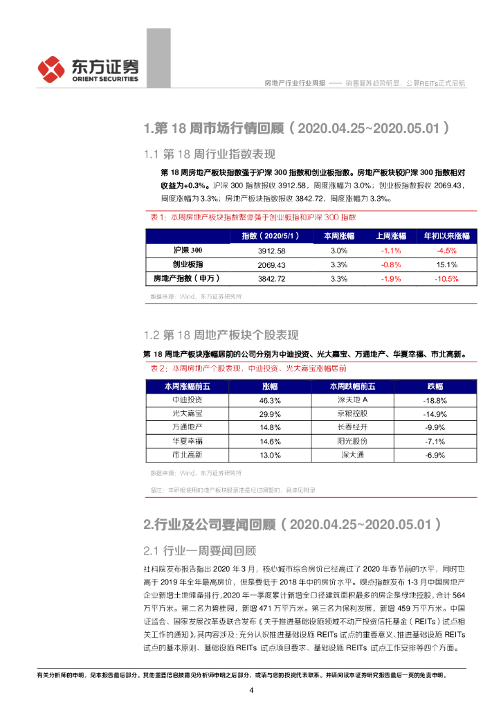 东方证券:2020年第18周地产周报:销售复苏趋势明显,公募REITs正式启航.pdf
