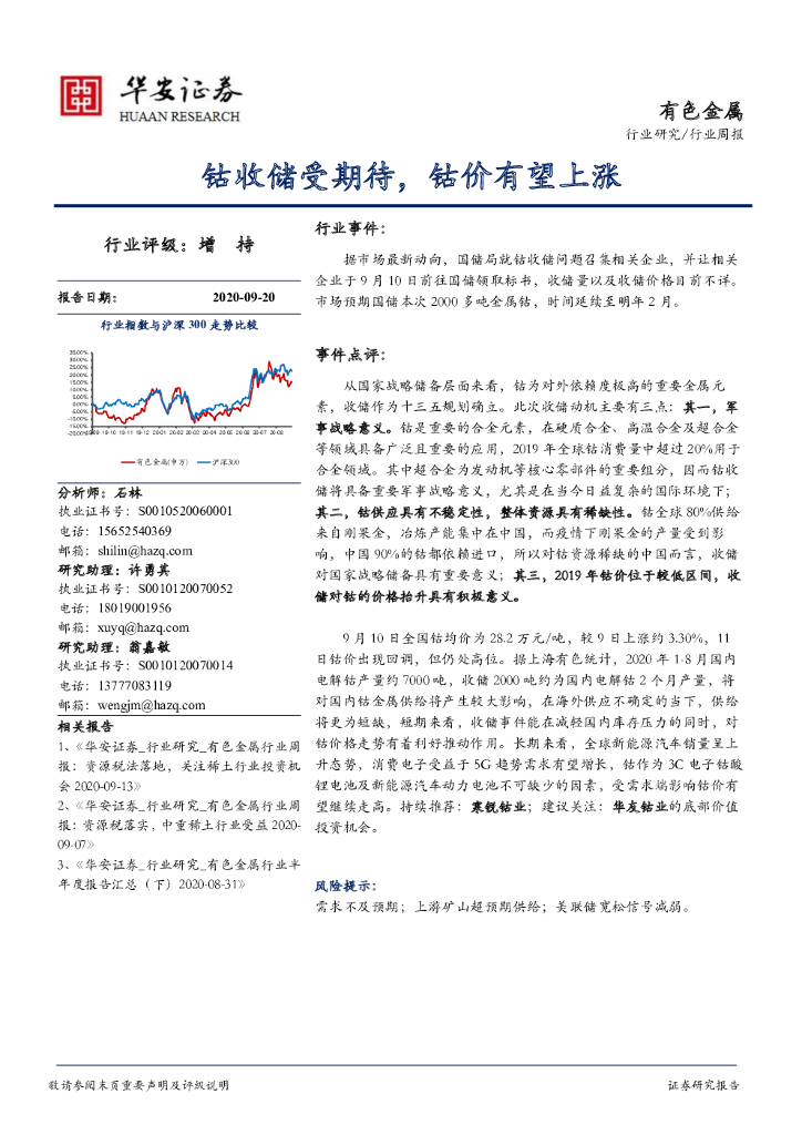 华安证券:有色金属行业周报:钴收储受期待,钴价有望上涨.pdf