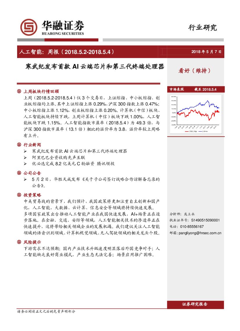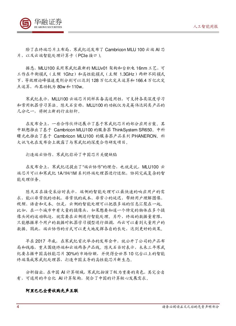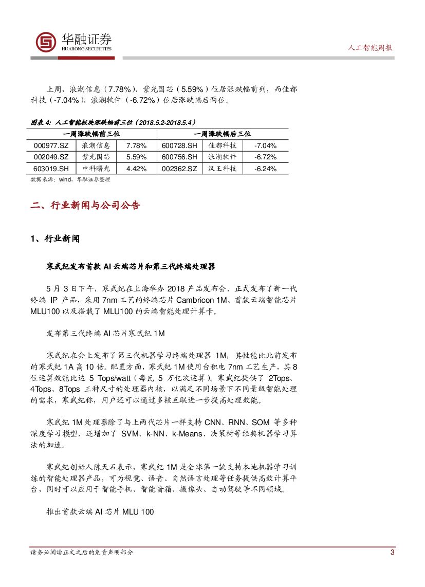 华融证券:人工智能:周报-寒武纪发布首款AI云端芯片和第三代终端处理器.pdf