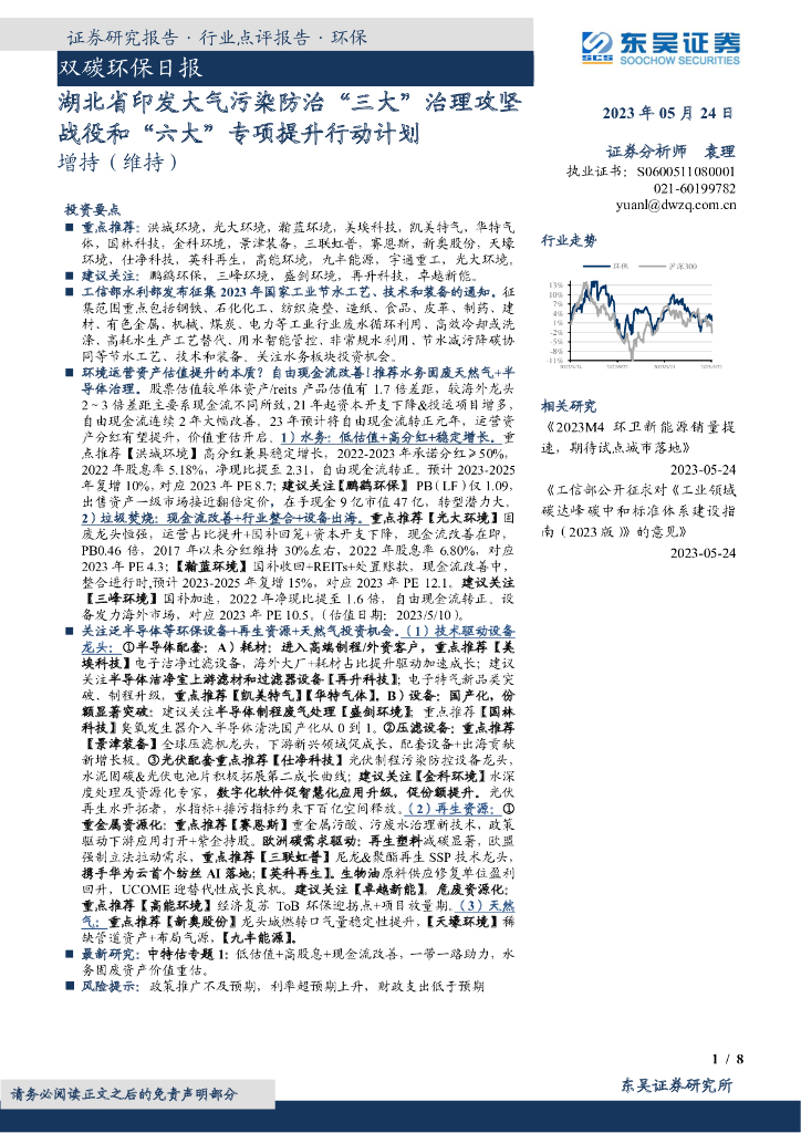 东吴证券:双碳环保日报:湖北省印发大气污染防治“三大”治理攻坚战役和“六大”专项提升行动计划.pdf