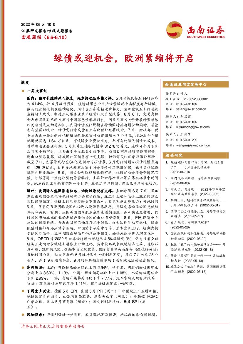 西南证券:宏观周报:绿债或迎机会,欧洲紧缩将开启.pdf
