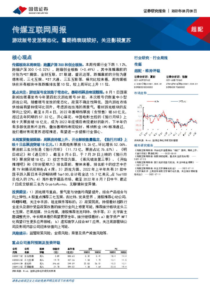 国信证券:传媒互联网周报:游戏版号发放常态化,暑期档表现较好,关注影视复苏.pdf