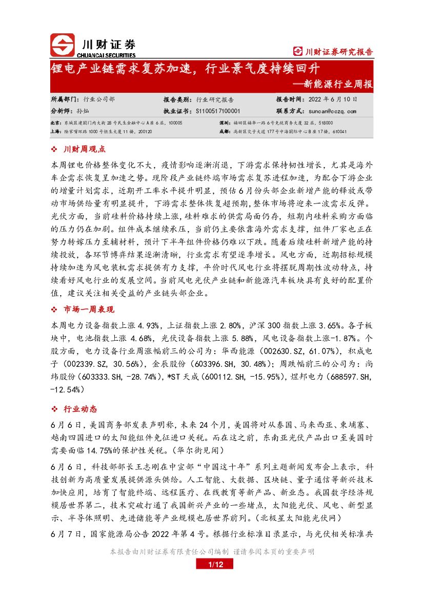 川财证券:新能源行业周报:锂电产业链需求复苏加速,行业景气度持续回升.pdf