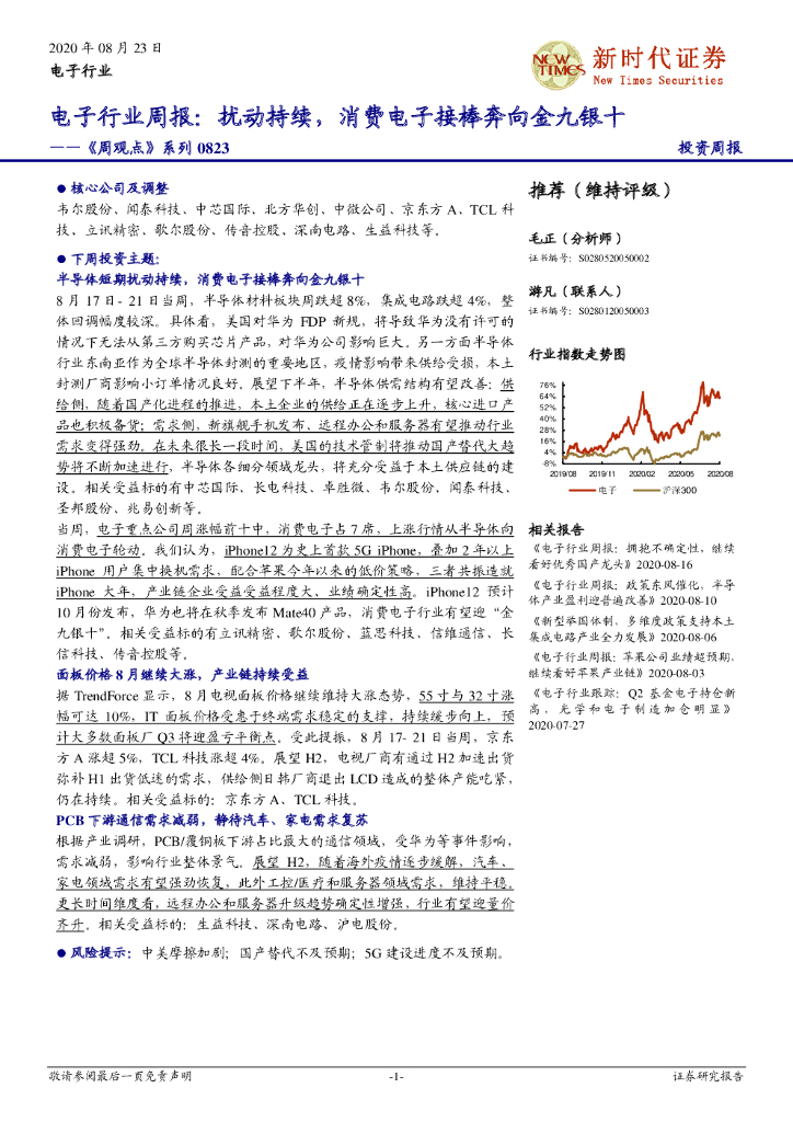 新时代证券:电子行业周报:扰动持续,消费电子接棒奔向金九银十.pdf