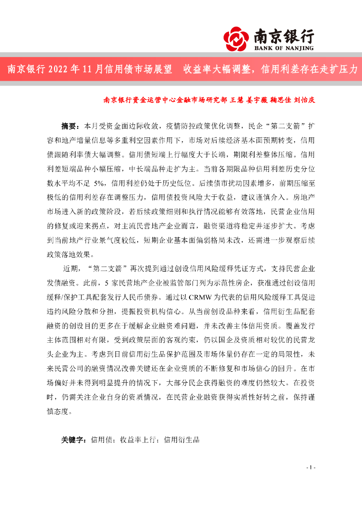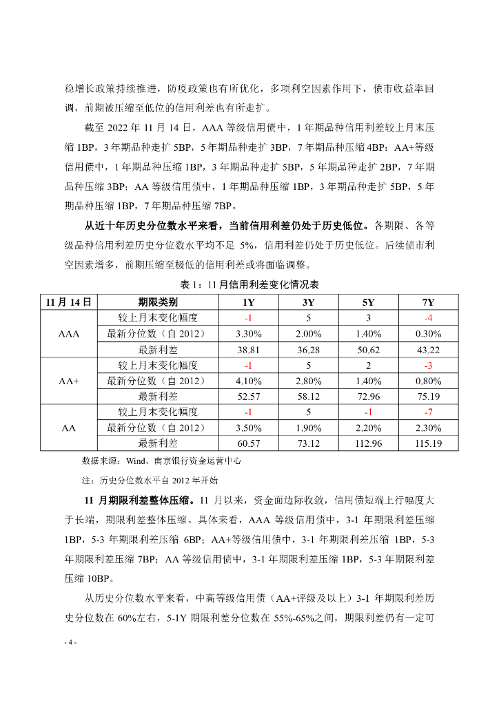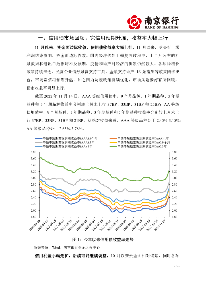 南京银行:收益率大幅调整,信用利差存在走扩压力-2022年11月信用债市场展望.pdf