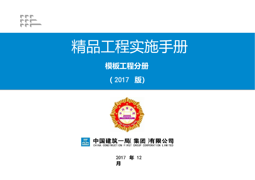 中建一局:《精品工程实施手册》模板工程分册(2017版) .ppt