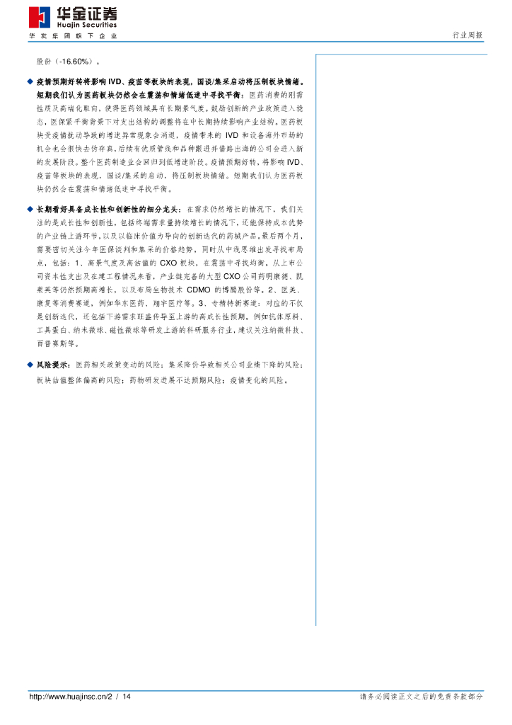 华金证券:医药行业周报:新冠口服药各有进展,长期看好创新迭代和成长性.pdf