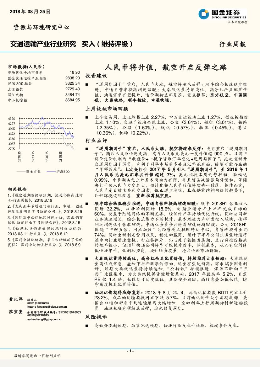 国金证券:交通运输产业行业周报:人民币将升值,航空开启反弹之路.pdf