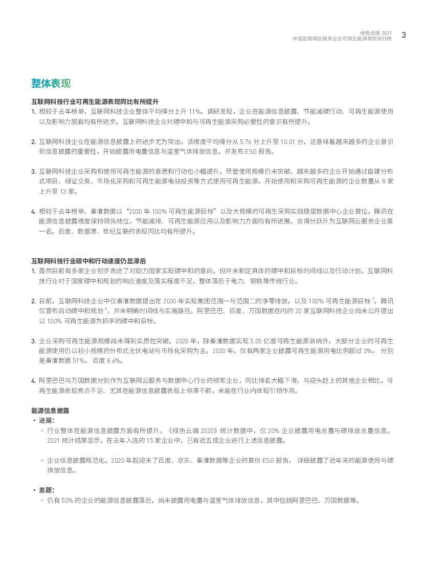 绿色和平:绿色云端2021:中国互联网云服务企业可再生能源表现排行榜.pdf